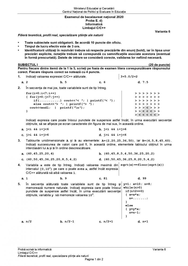 Barem Fizică și Informatică Bac 2020 Cum Se Rezolvau Subiectele