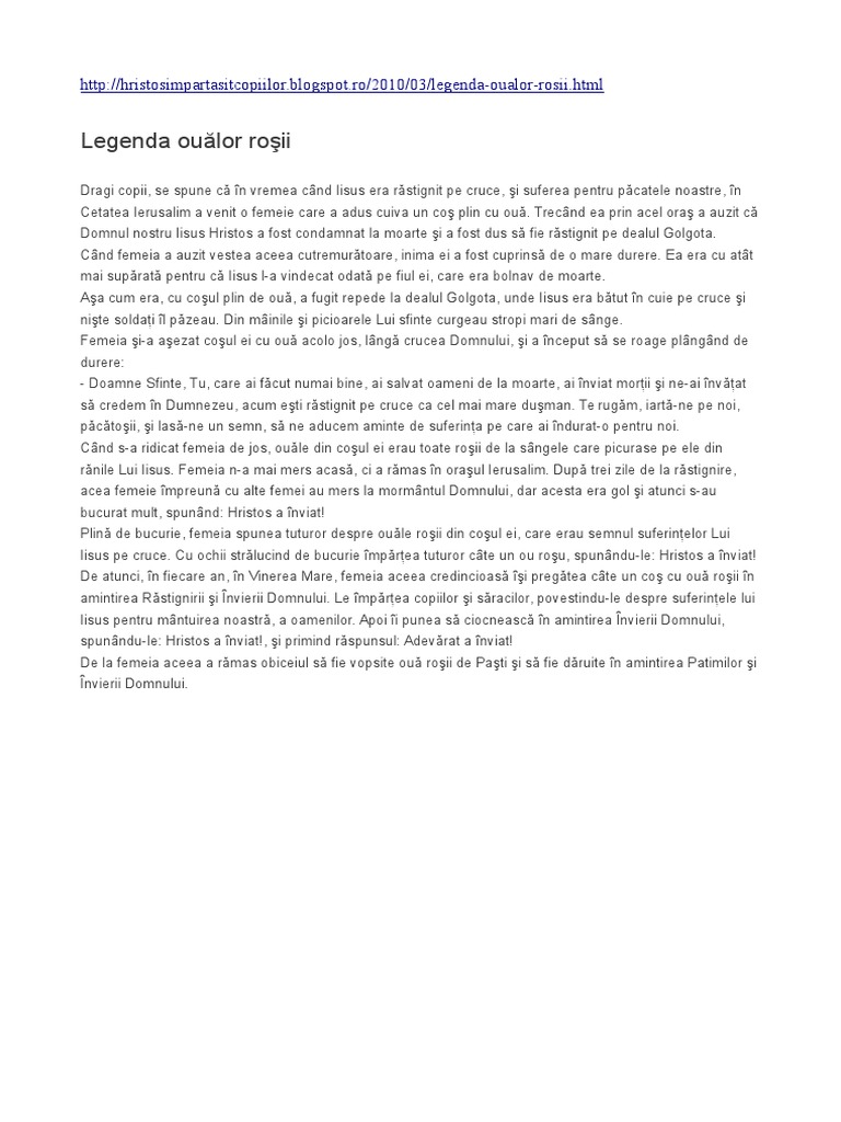 Legenda Ouălor Rosii De Paste Anideșcoală Ro