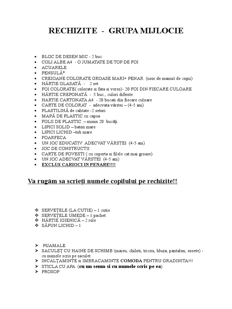Lista Rechizite Gradinita Grupa Mare Alegerea Pe Care O Vei Repeta