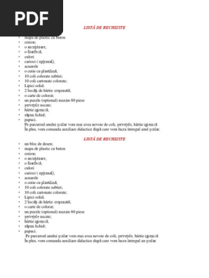 Listă De Rechizite Pentru Grădiniță Jurnal De Prichindei