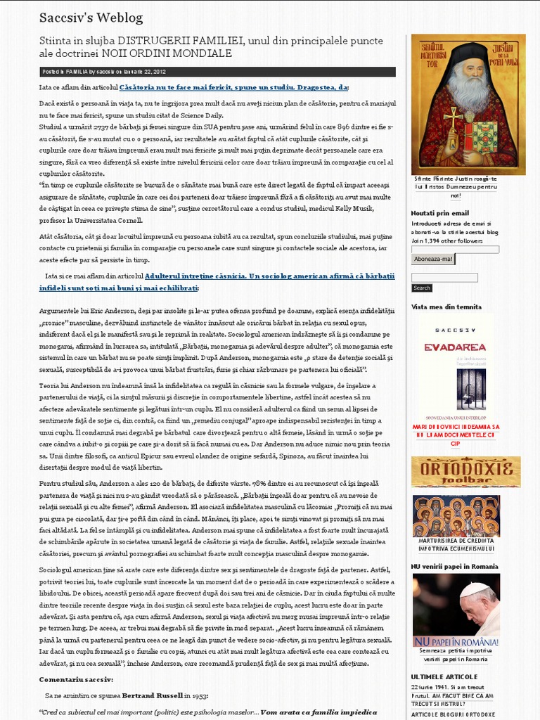 Stiinta In Slujba Distrugerii Familiei Unul Din Principalele Puncte Ale Doctrinei Noii Ordini Mondiale