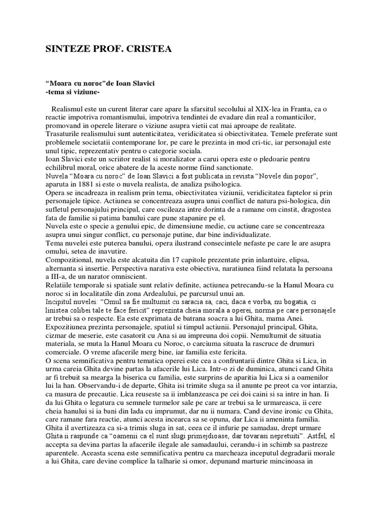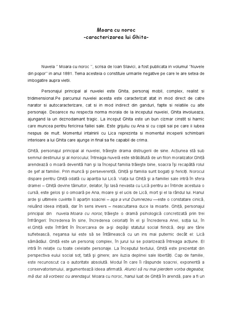 Doc Caracterizare Ghita Moara Cu Noroc De Ioan Slavici Elena Grigorescu Academia Edu