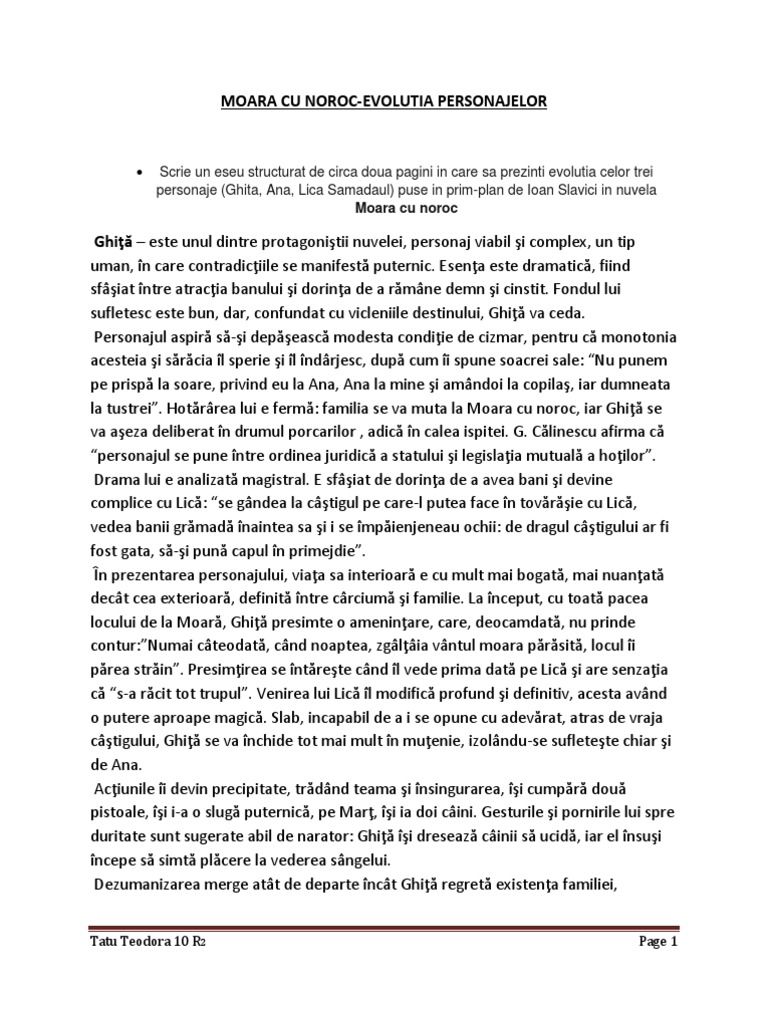 Eseu De Bacalaureat 3 Moara Cu Noroc Wattpad