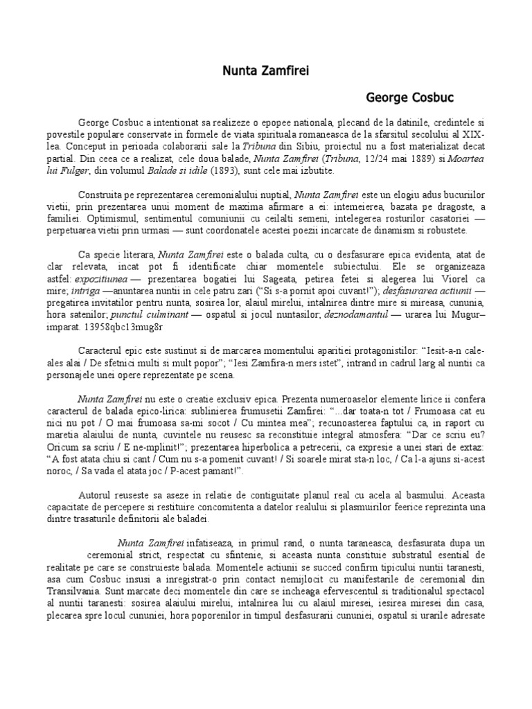 Nunta Zamfirei George Cosbuc