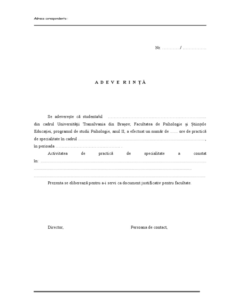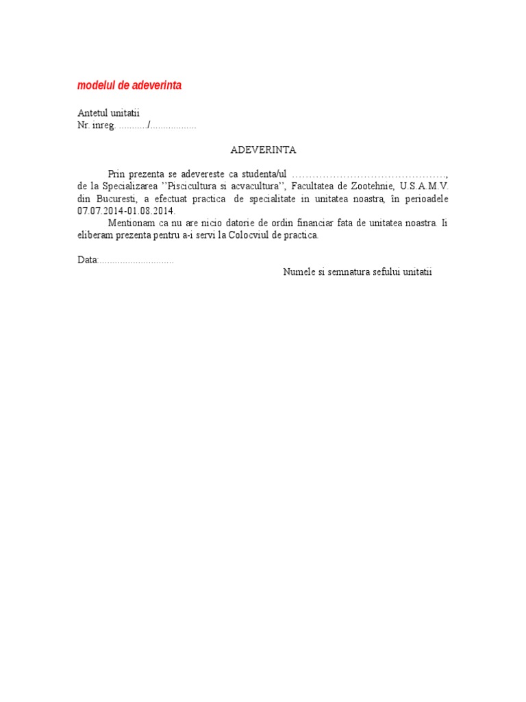 Adeverinta Pentru Efectuarea Stagiului De Practica