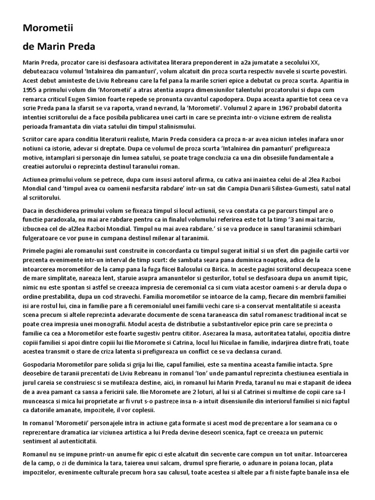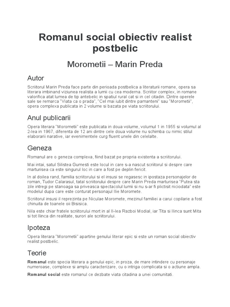 Pdf Romanul Postbelic Morometii De Marin Preda Pdf Burus Bernat Academia Edu