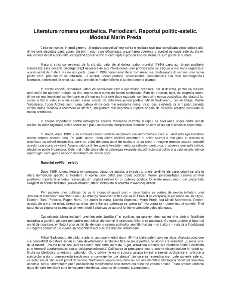 Perioada Postbelica In Literatura Romana