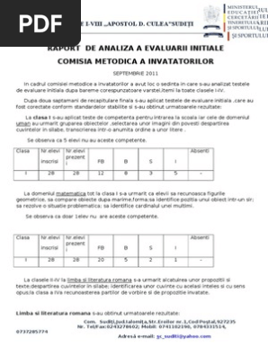 Materialul contine analiza evaluarii rezultatelor minimale ale copiilor din grupa mare obiective si itemi durata si notare interpretare concluzii si masuri pedagogice ameliorative pentru anul scolar 2009 2010. Plan evaluare elevi 4 1 standard minimal promovare 5 caiet de evaluare 6 documentatie on line 7 portofoliu elev 8 activitati de invatare 9 tema pentru acasa 10 teste initiale plan remedial teste initiale tehnic 2015 2016 18 dirigentie 9h 2017 2018. Este un plan de recuperare in urma rezultatelor evaluarii initiale. Urmărirea progresului şcolar al elevilor realizarea unor analize comparative.
