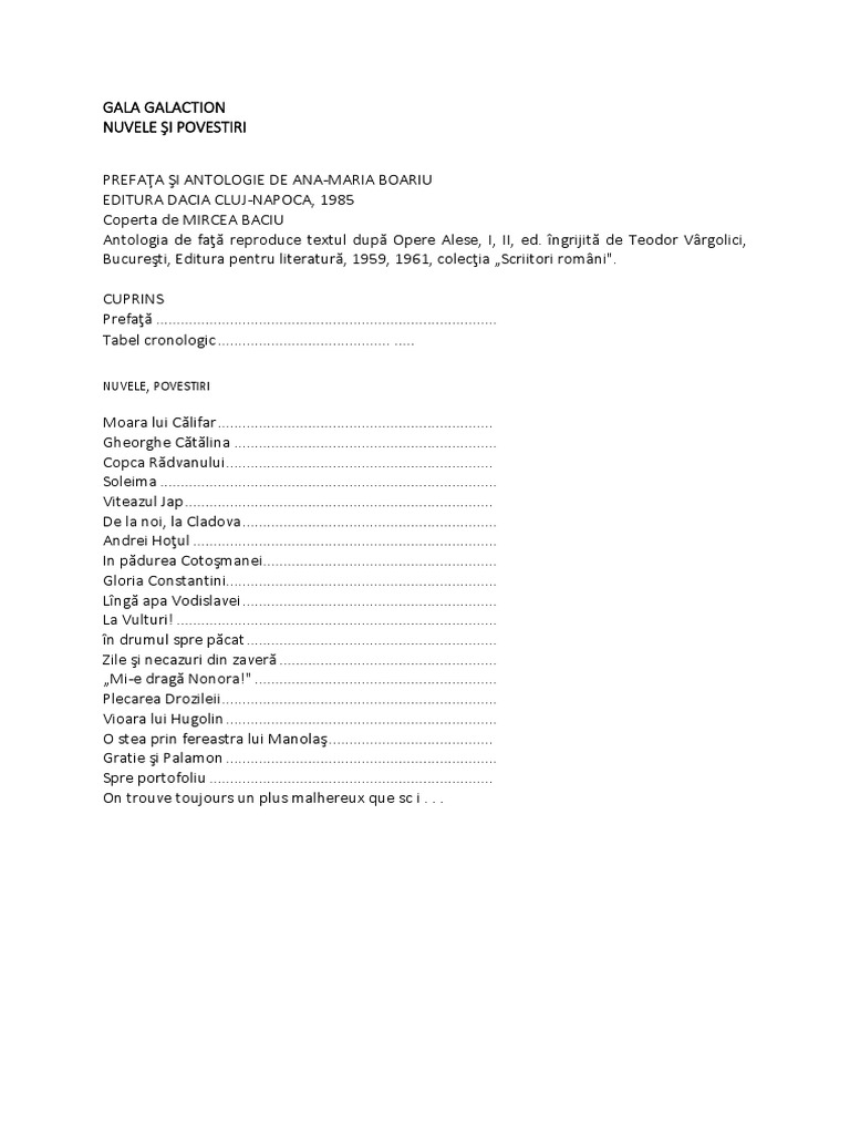 Galaction Gala Nuvele Si Povestiri Docx