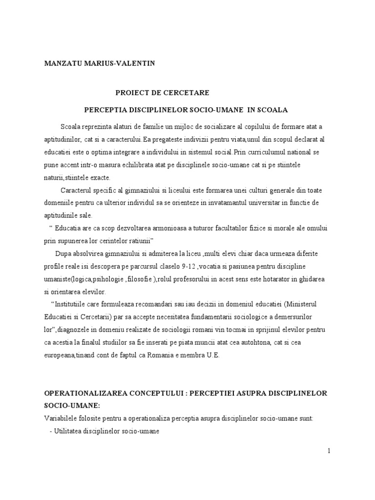 Raport Cercetare Perceptia Disciplinelor Socio Umane In Scoala