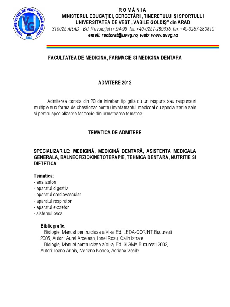 Grile Admitere Facultatea De Medicina Dentara Librarie Online Uvvg
