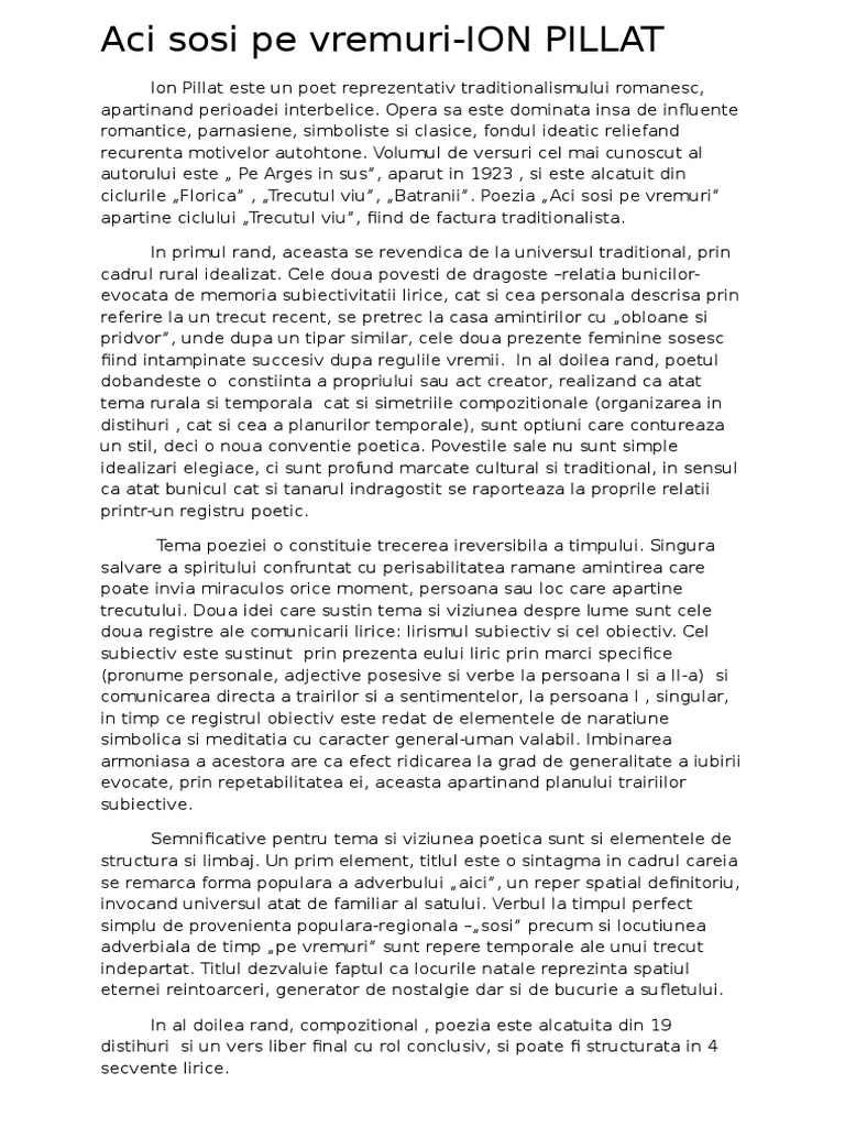 Aci Sosi Pe Vremuri Eseu Ion Pillat