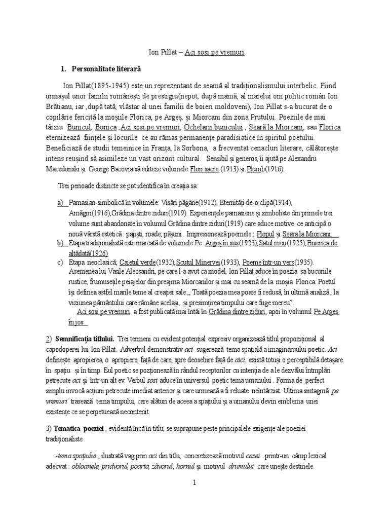 Ion Pillat Aci Sosi Pe Vremuri Tradiionalismul Aci Sosi Pe Vremuri Ion Pillat Context Poezia Aci Sosi Pe Vremuri Este O Poezie De Factur Course Hero