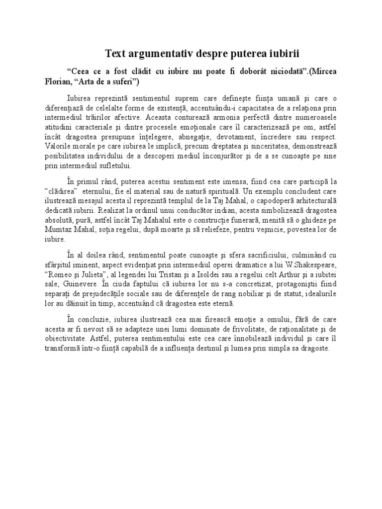 Text Argumentativ Despre Puterea Iubirii1