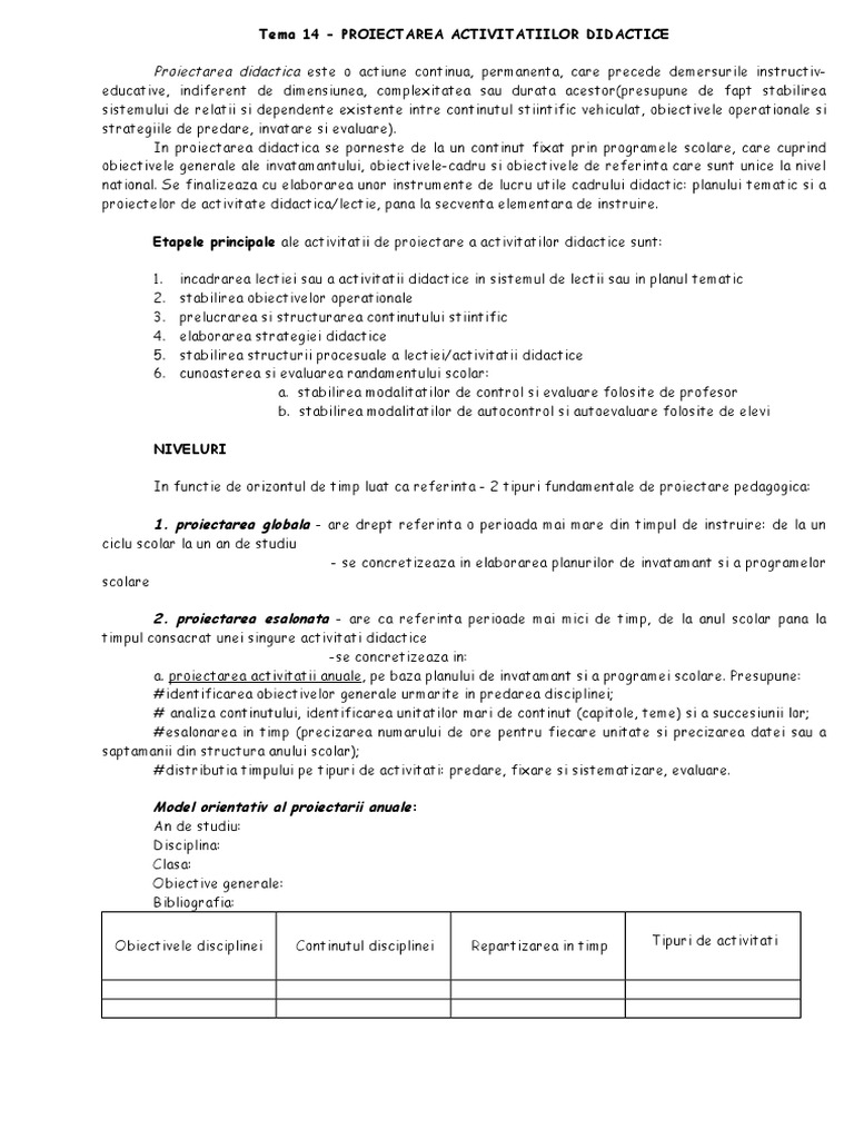 Doc Tema 14 Proiectarea Activitatiilor Didactice Tina Cruceanu Academia Edu