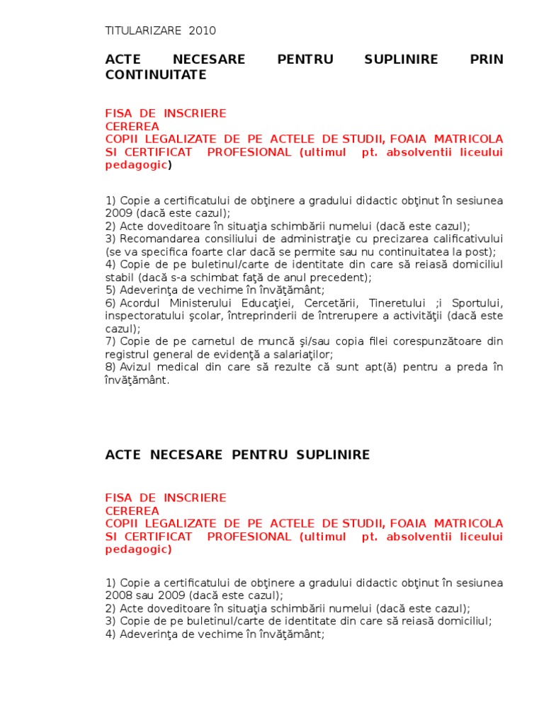 Acte Necesare Pentru Suplinire Suplinire Prin Continuitate