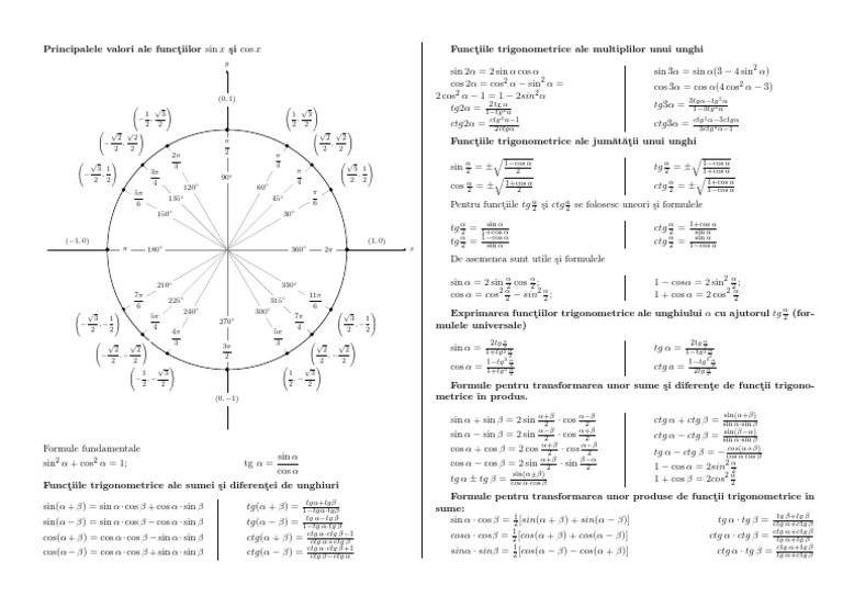 Formule Trigonometrie Pag 4 Ecuatii Trigonometrice Fundamentale Transformarea Sumelor In Produse Si A Produselor In Sume