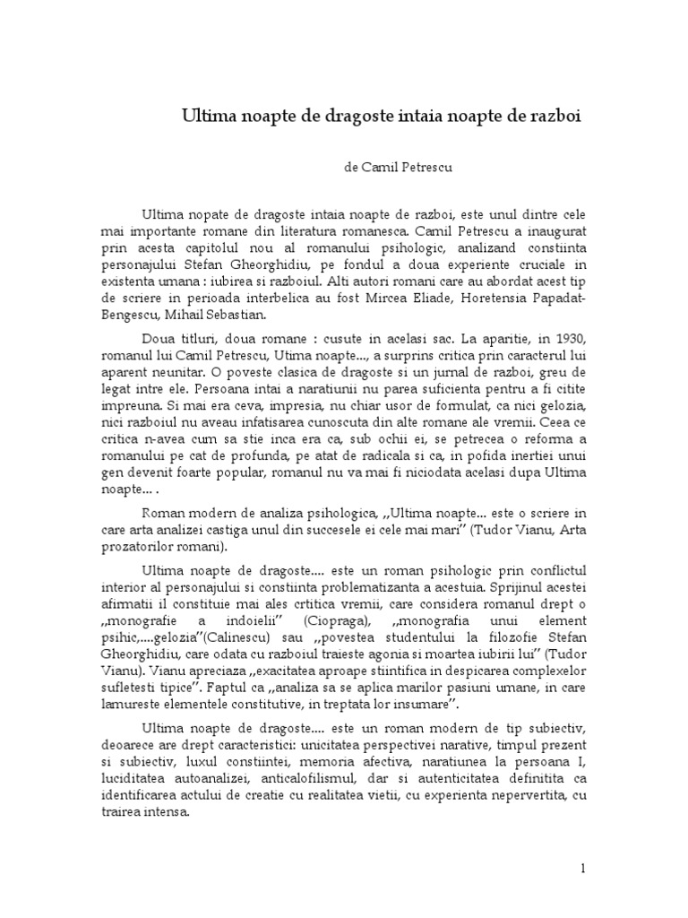 Referat Romanul Subiectiv Ultima Noapte De Dragoste Intaia Noapte De Razboi 150238 Graduo