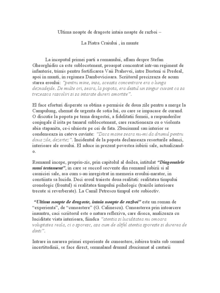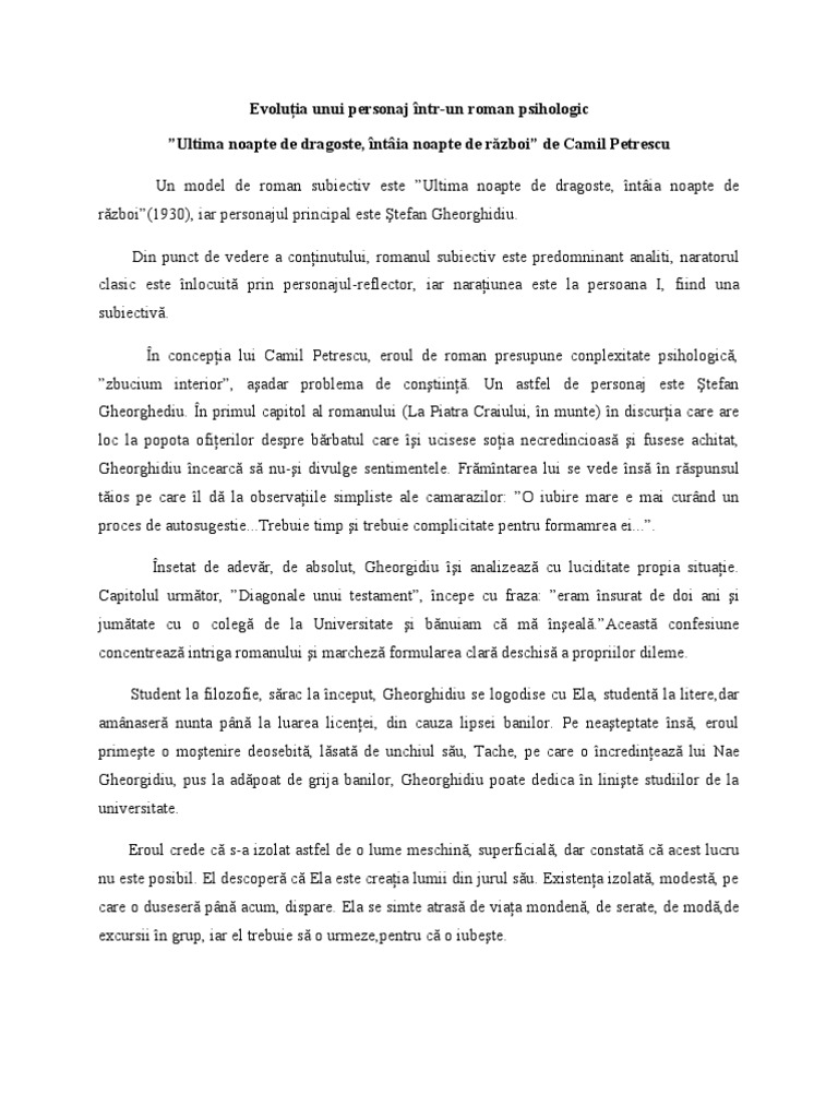 Www Referat Ro Romanul Subiectiv Modern Ultima Noapte De Dragoste I