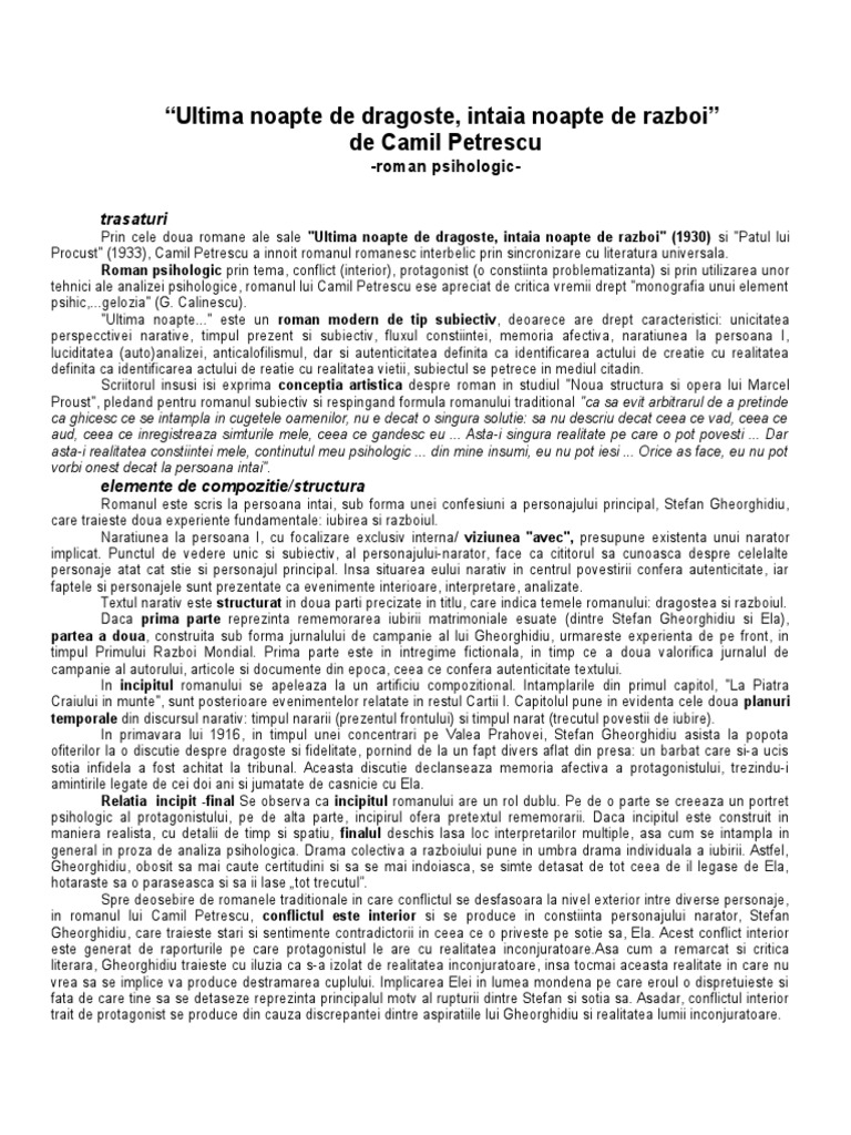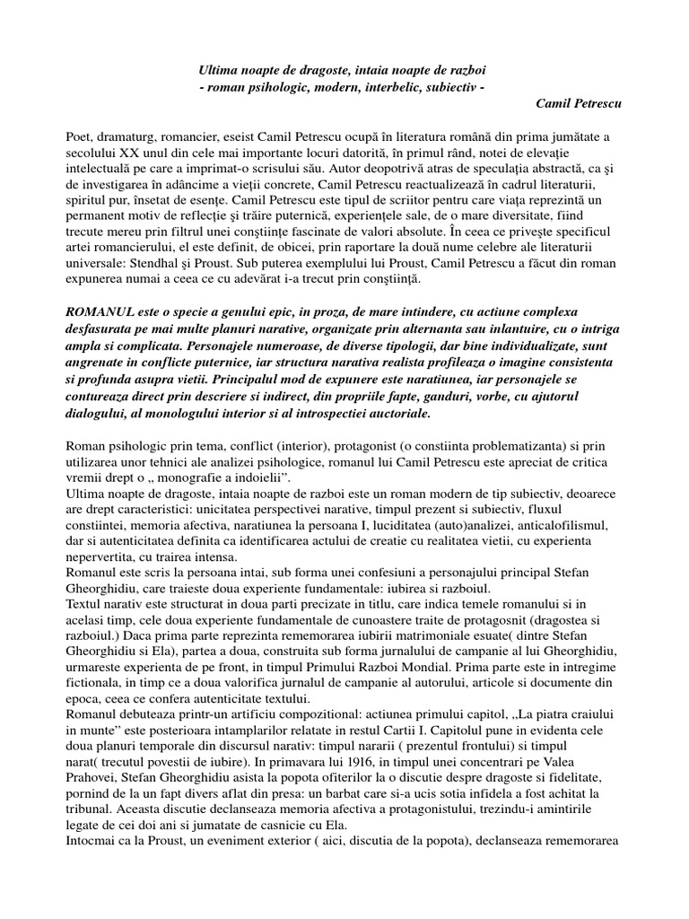 Doc Ultima Noapte De Dragoste Intaia Noapte De Razboi Camil Petrescu Popescu Andrei Academia Edu