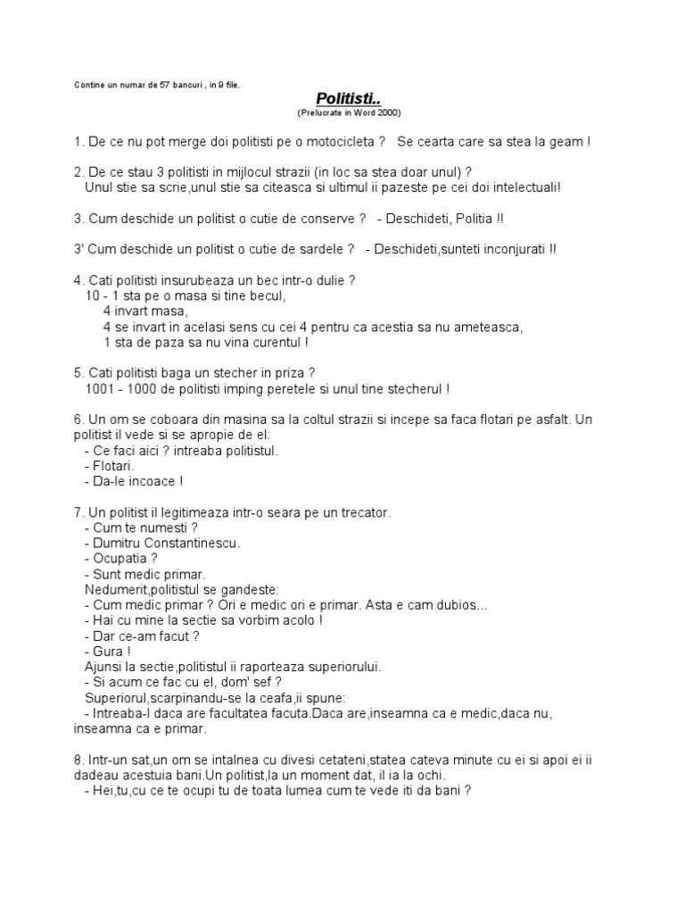 Bancuri Cu Politisti